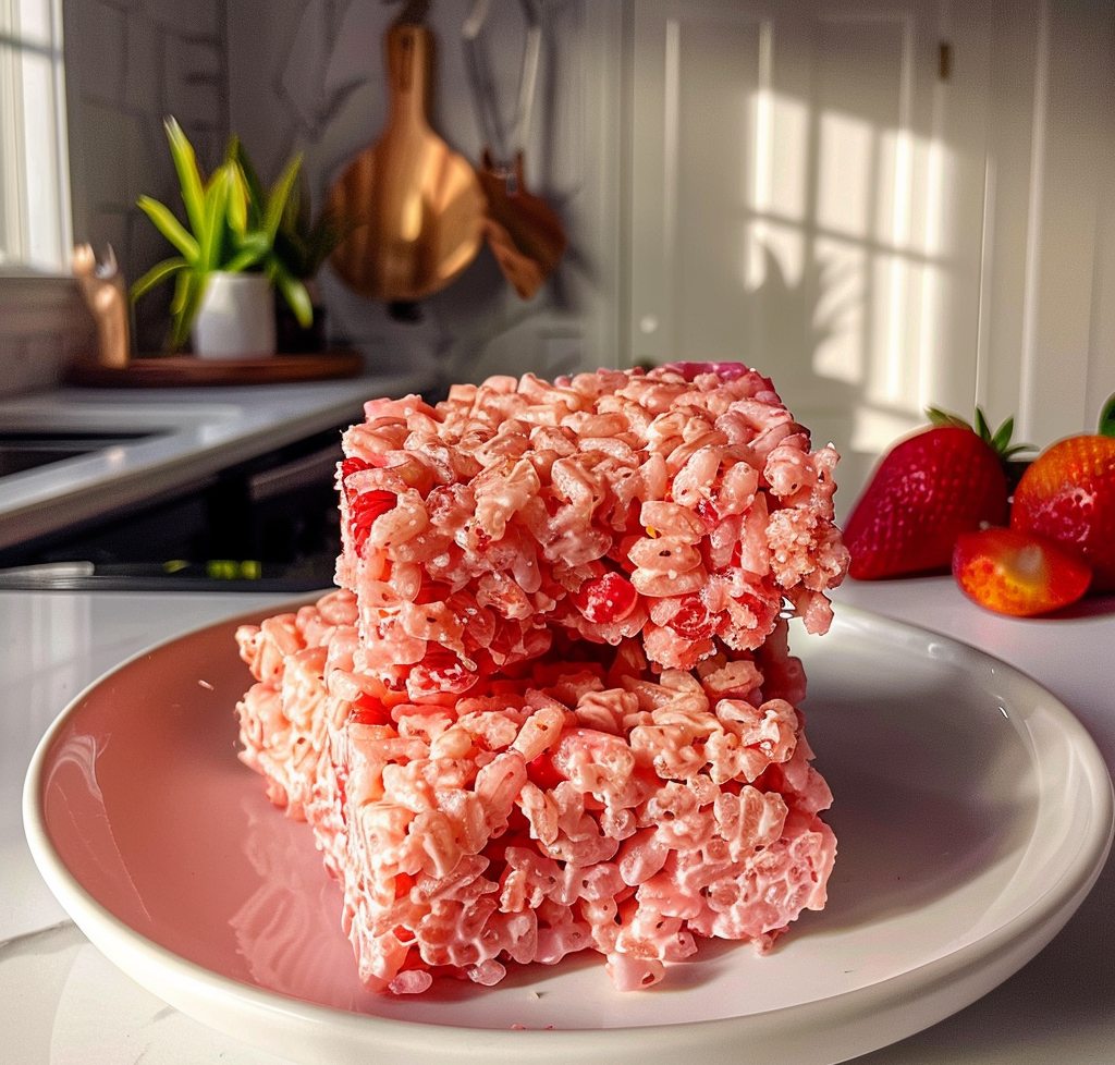 Enjoy this quick journey into delightful sweetness with your homemade strawberry crunch rice krispie treats!